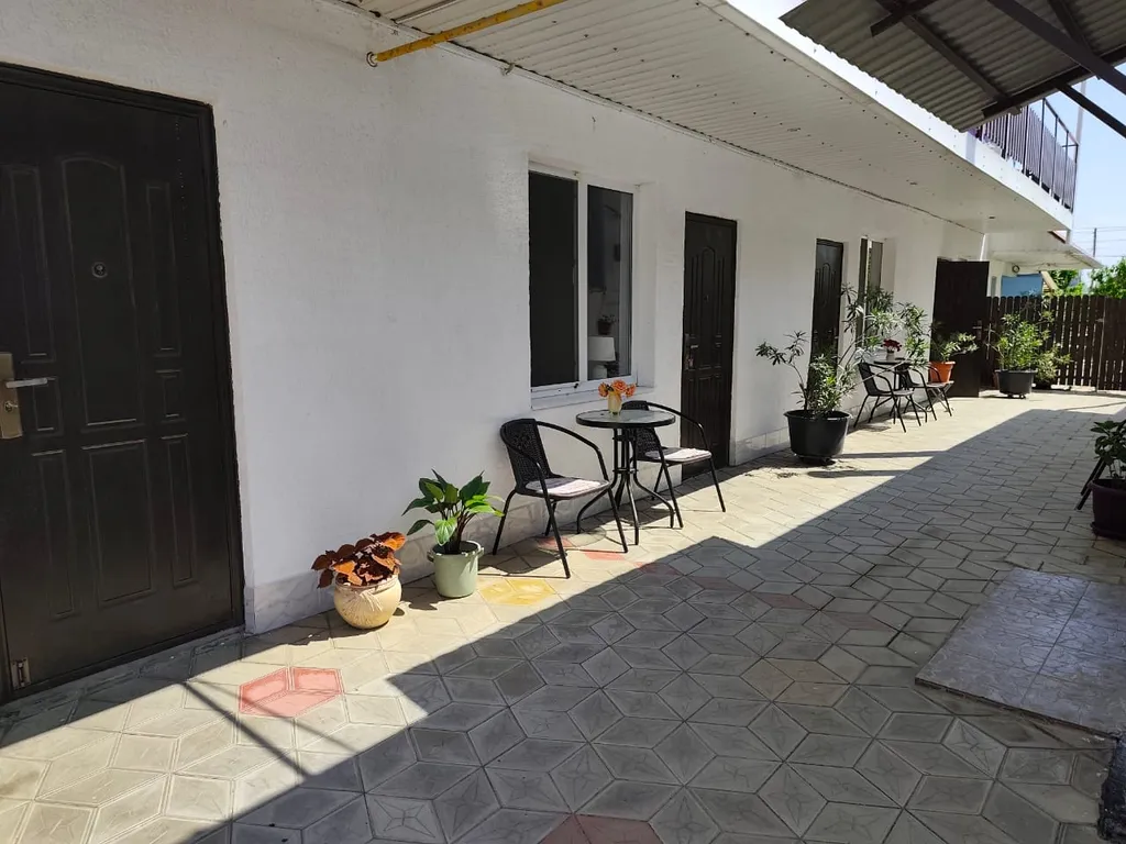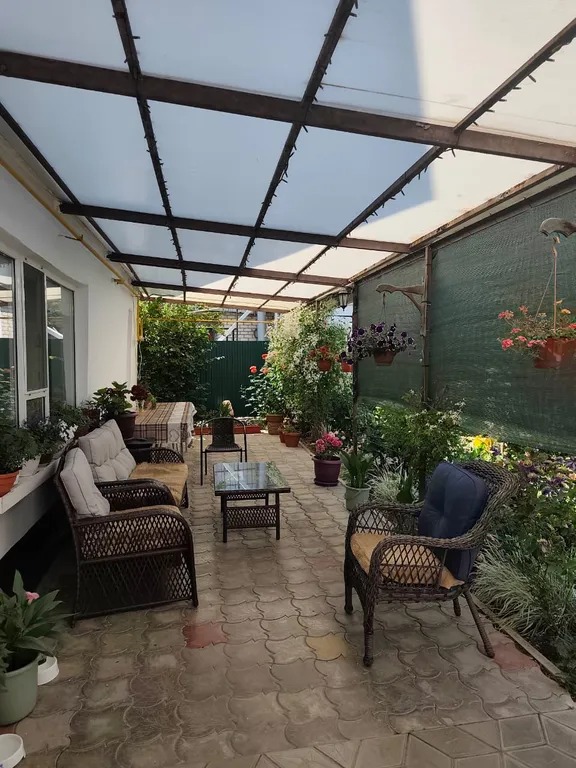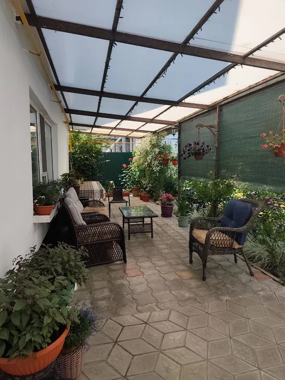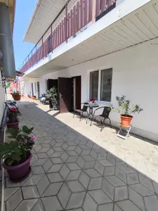 Большой ухоженный двор, утопающий в розах. Летний душ, мангал, около каждой комнаты свои столики, где можно отдохнуть вечером. До центра пешком 15-20 минут, рядом есть кафе с домашней кухней и продуктовые магазины пятерочка,